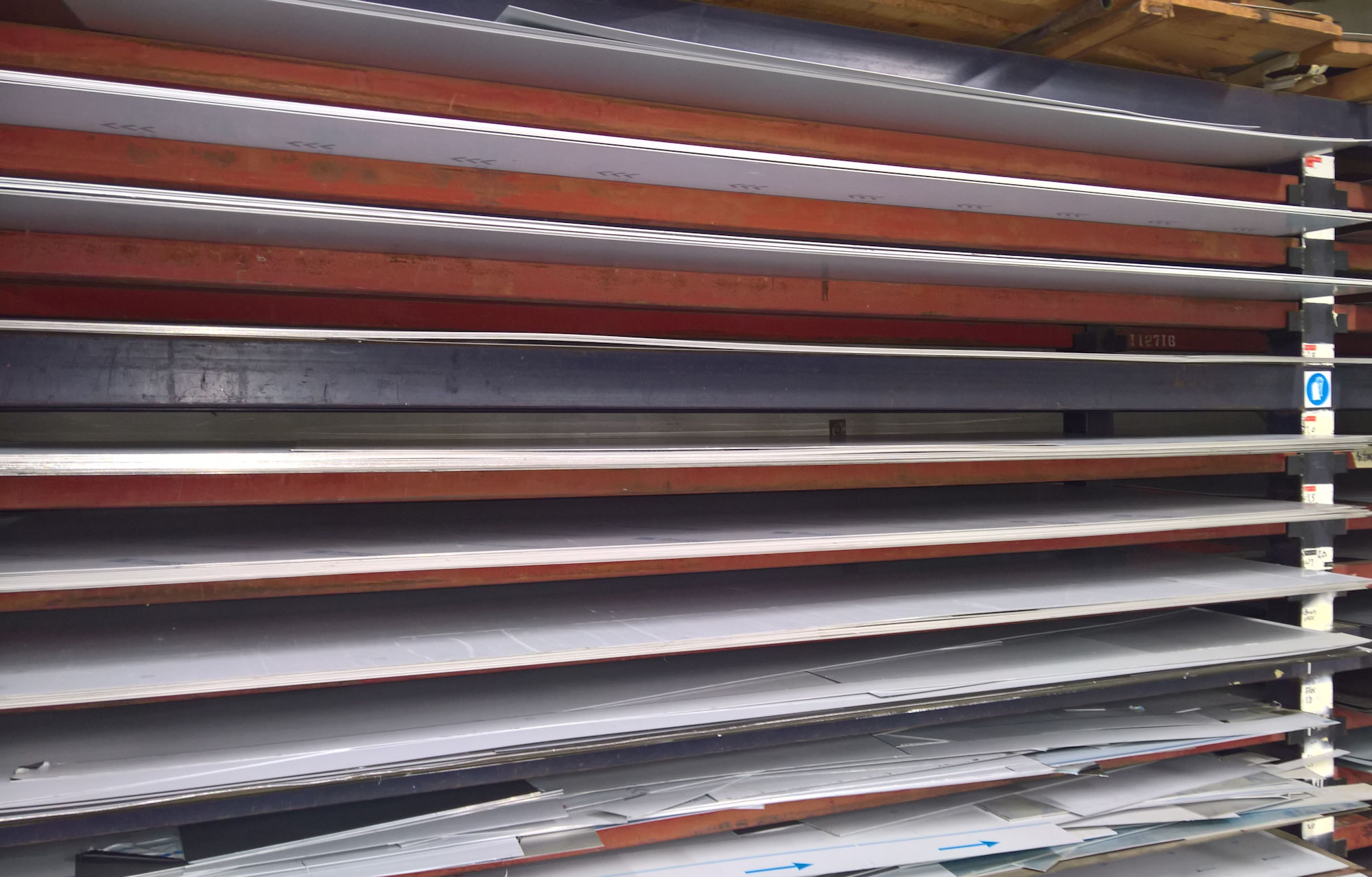 Material vi lagerför är bla lackerad byggnadsplåt (ca 25 olika färger) Rostfritt - järnplåt - Koppar - Mässing - Galvad plåt -Aluminium (flertalet olika varianter) - Aluzink -Elgalv